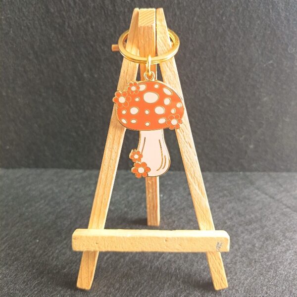 24K gold metal hard enamel mushroom keychain with small jump ring and 30mm flat ring