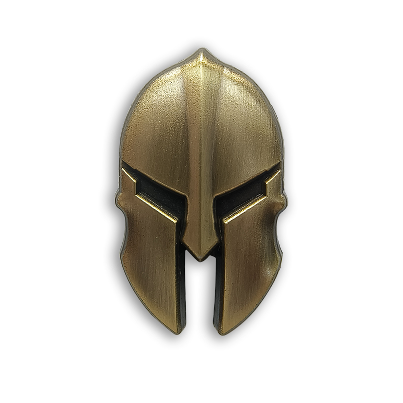This is a 3D Effects Antique gold Knight Helmet Pin.