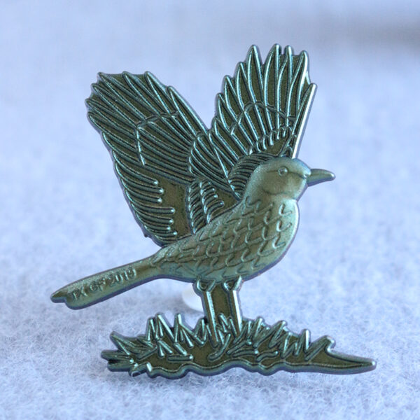 This pin used 3D effects. It is no color bird pin with chameleon plating.
