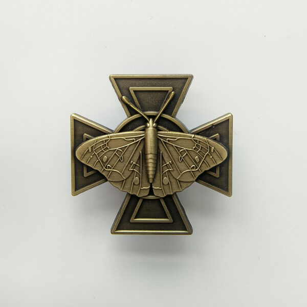 This is a butterfly  no color pin. It finished by antique gold plating.