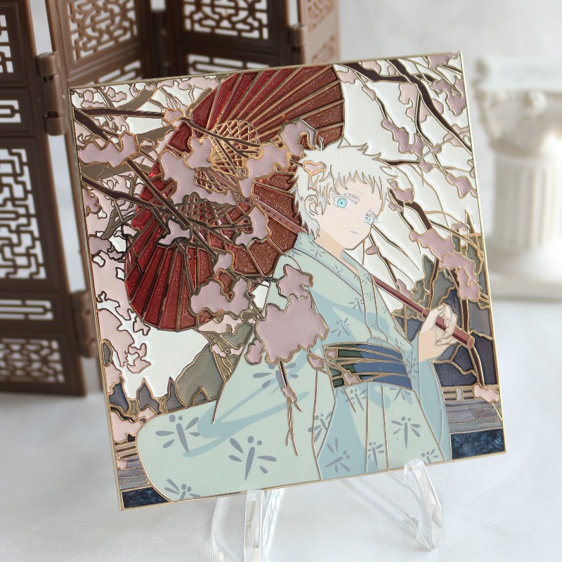 rose gold hard enamel with red gradient pearl effect and silkprint
