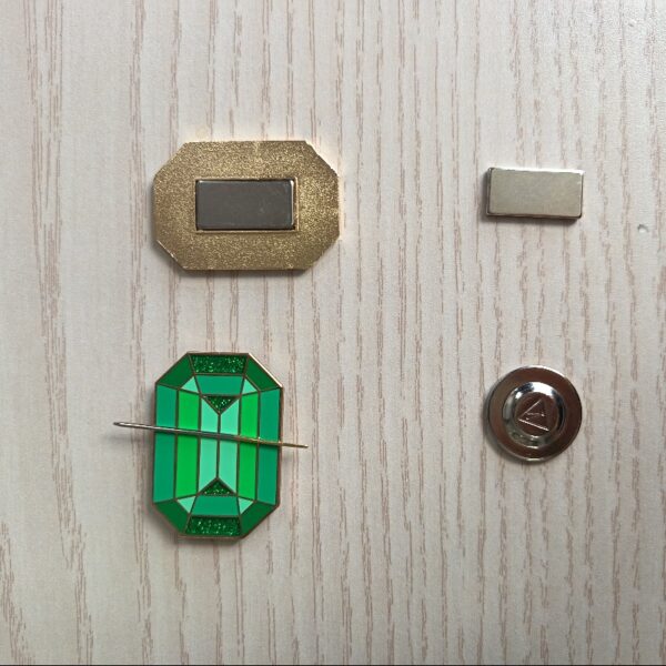 Needle minder pin consists of two parts: a decorative front magnet and a back magnet for securing.