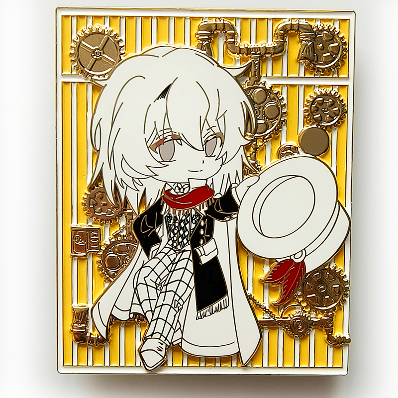 Rectangle shape pin with geer stripes boy with dress top