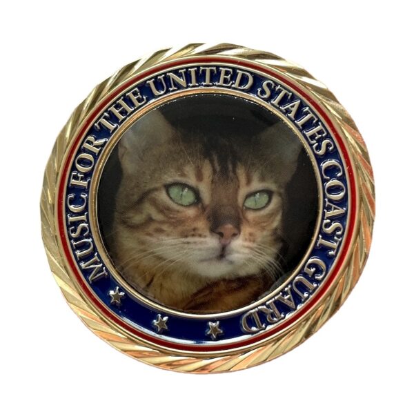 Round shape challenge coin with diamond edge photo printing insert with cat