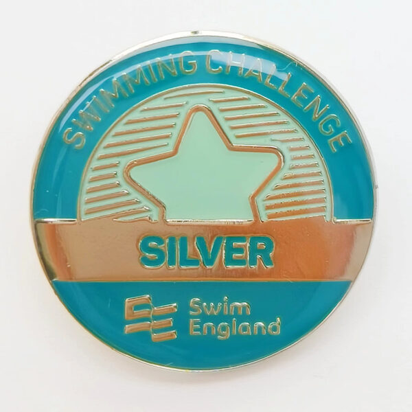 Here is Swimming Challenge soft enamel pin with epoxy.
