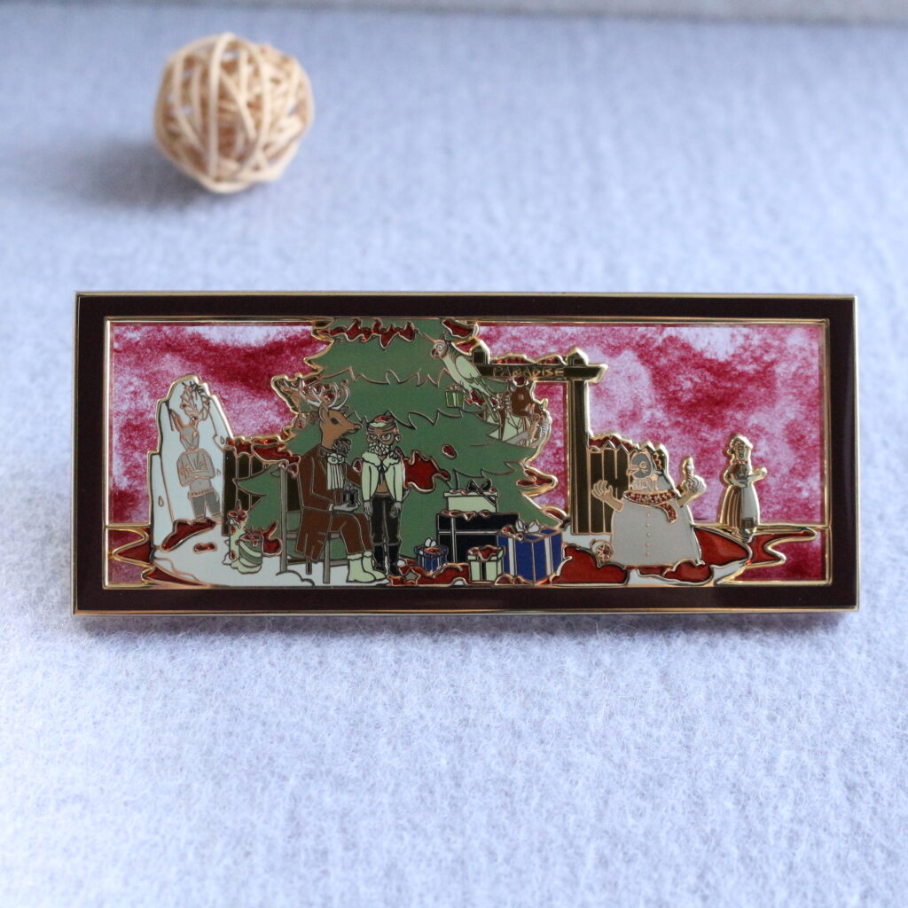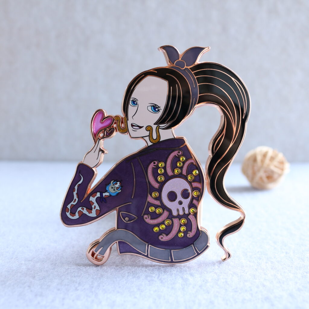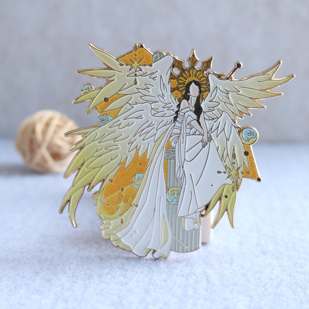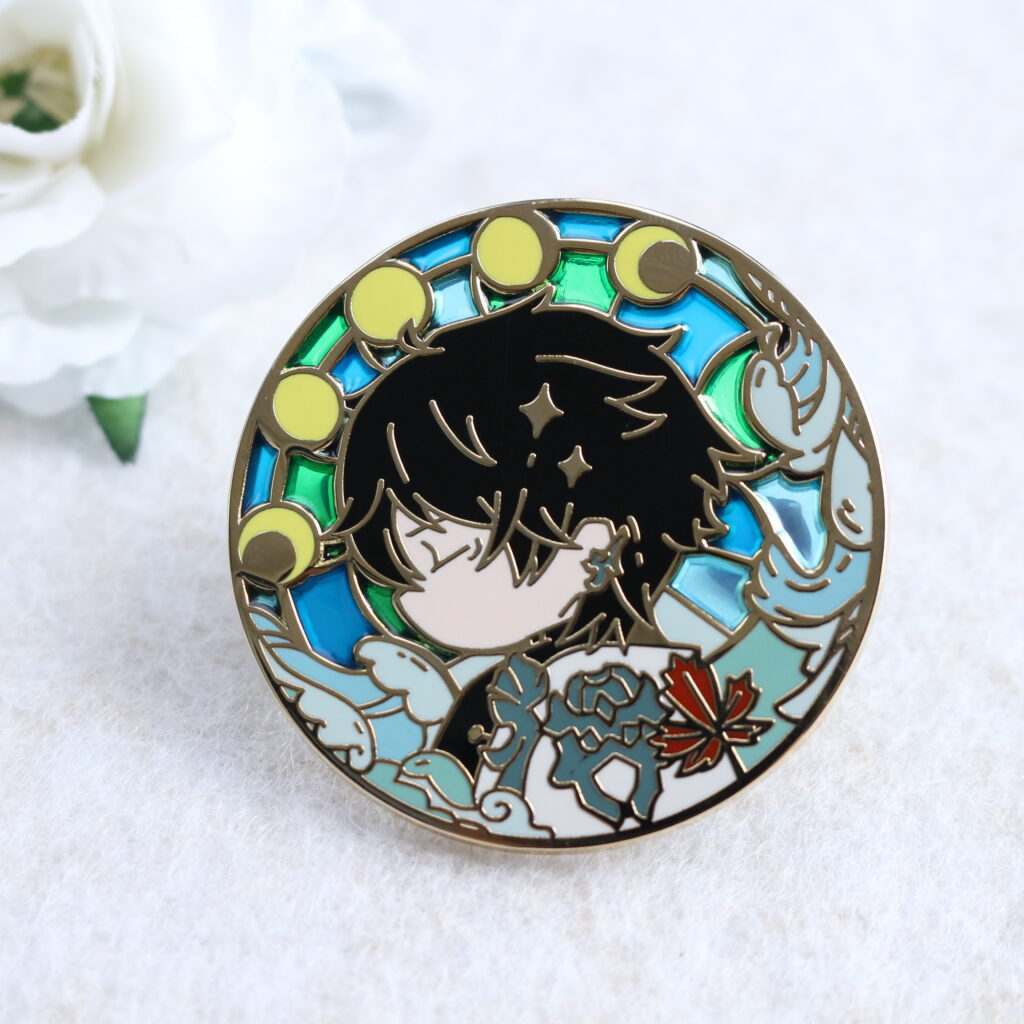 Stained Glass pins mimic miniature stained-glass windows. In this effect, the pin’s metal layer is cut out or cell-like partitions are created.